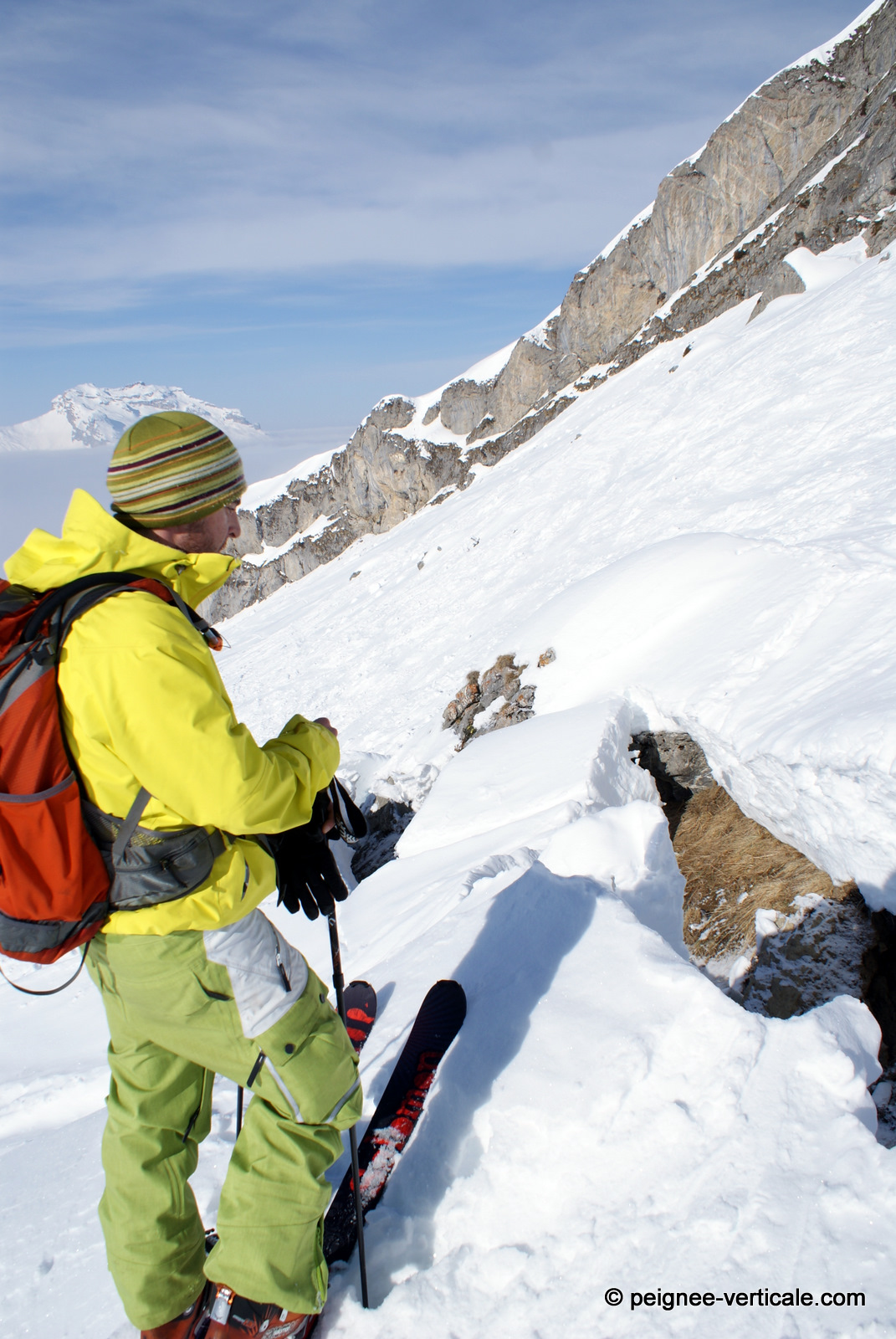 Au sommet, notre impression de la montée se confirme. Aucune face du massif ne semble épargnée et il y a de l’instabilité dans l’air… Attention après la prochaine chute de neige !