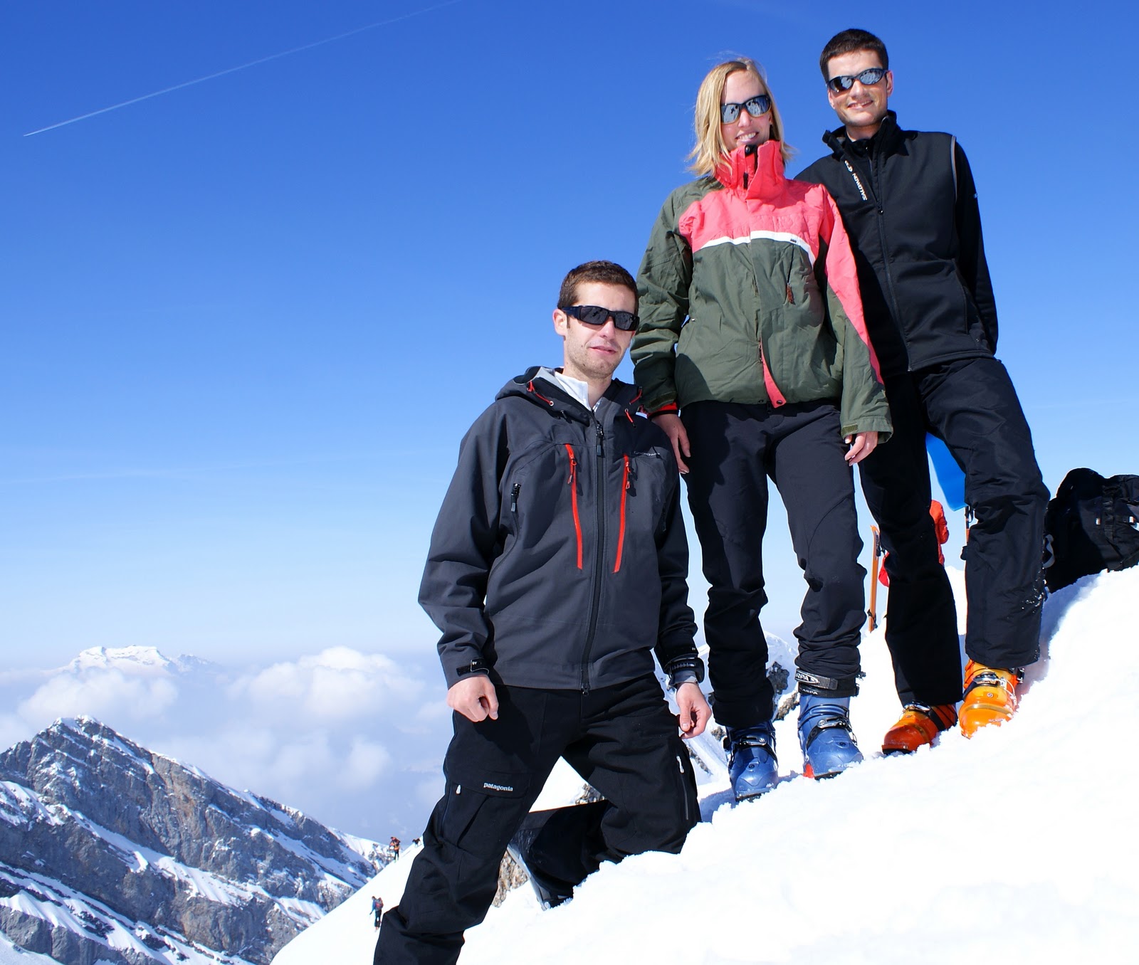 Petit pique nique au morteau et au comté au sommet! Puis descente en skis dans une neige qui commence tout juste à se réchauffer. Autant dire que les cuisses en prennent un coup et qu’on prend un pied monstrueux.