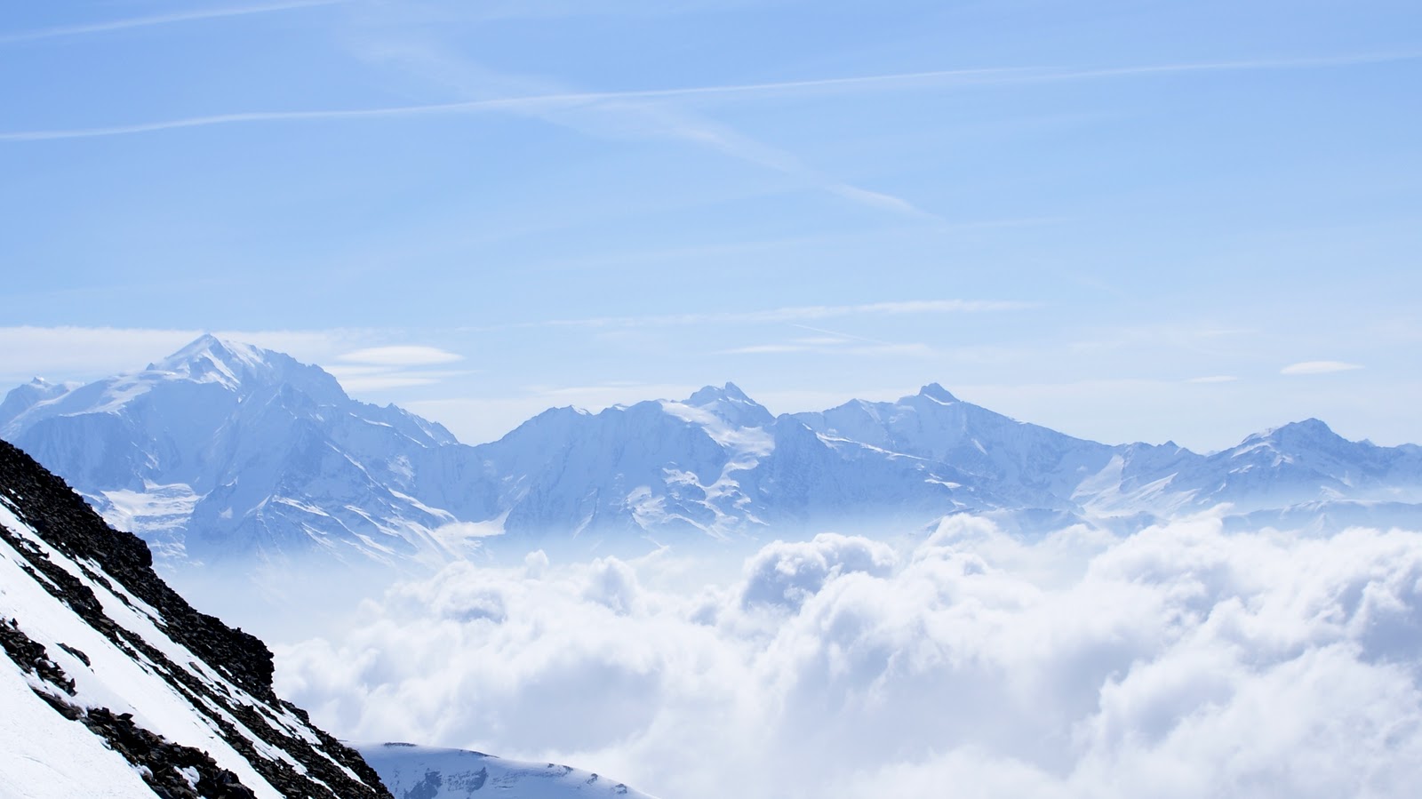 1100 mètres de dénivelé plus tard, une jolie vue nous est offerte au sommet. Mont Blanc, Pointe Percée et le Trou de la Mouche tout proche.