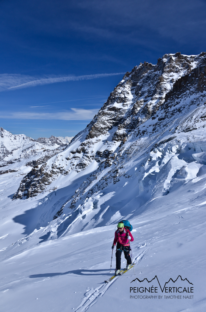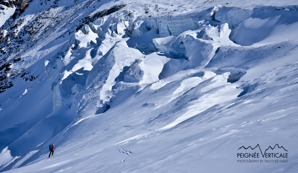C’est photogénique, mais je me suis déjà senti plus serein ! Je comprends en tout cas pourquoi ce versant est vierge de traces…