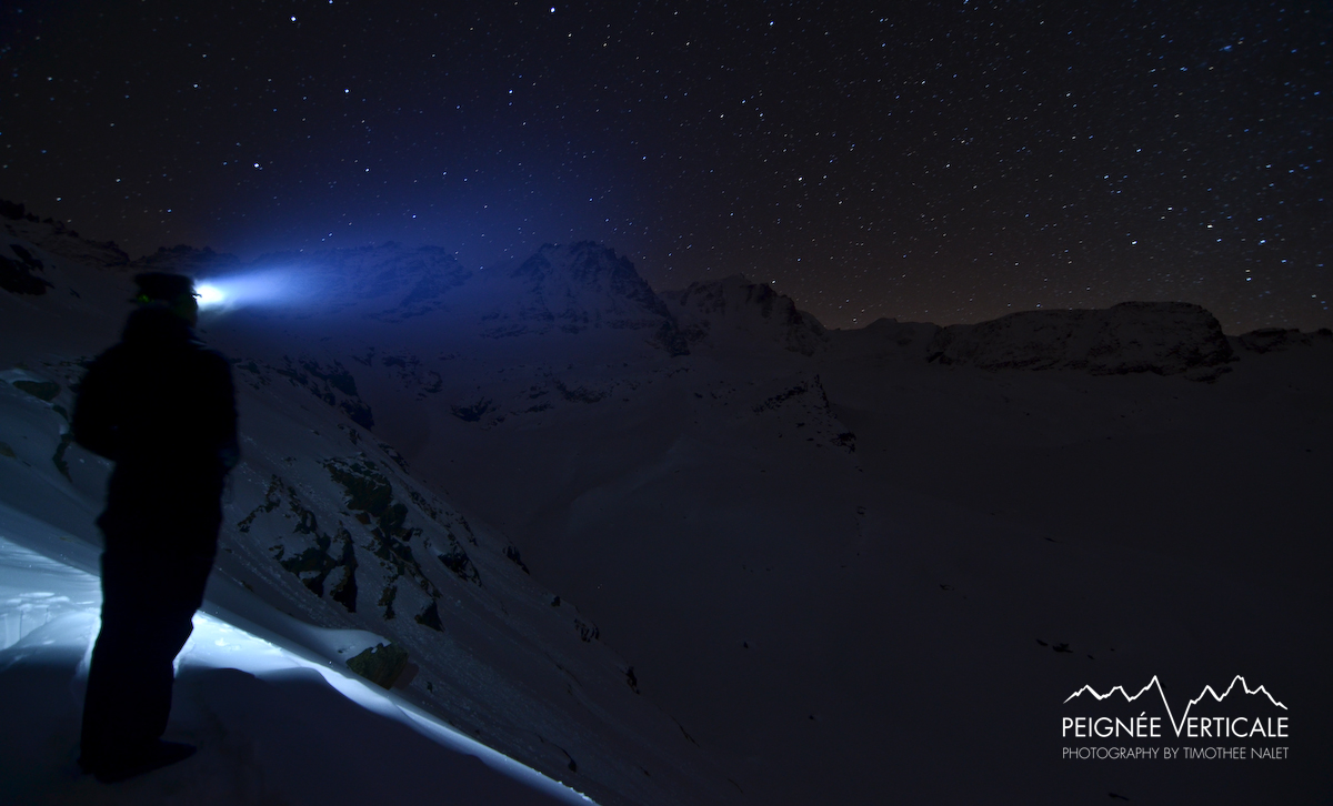 Le refuge éclairé à la frontale, je trouve cette photo tout simplement magique!
