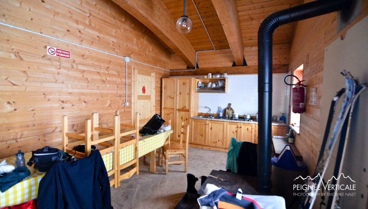 Cette fois-ci, l’ascension s’est faite à 2 avec Marine, et en quasi autonomie puisque nous avons passé la nuit au refuge d’hiver Chabod (grand luxe : gaz/bois/vaisselle/couvertures !).