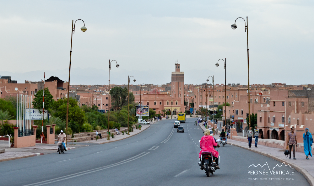 Ouarzazate – Centre ville de Ouarzazate, à la tombée du jour. |