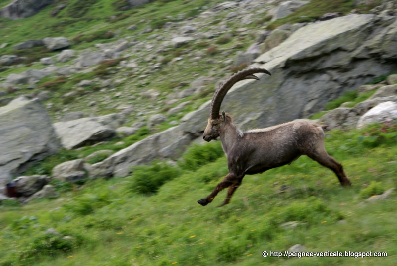 1h30 de marche jusqu’au refuge de la Pierre à Bérard, dans cette vallée interminable. Petite conversation avec un bouquetin au passage…