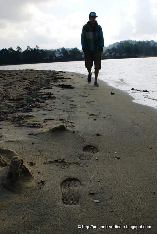 Pliage rapide du matos (trempé…) et petit déjeuner sur la plage de Sogne.