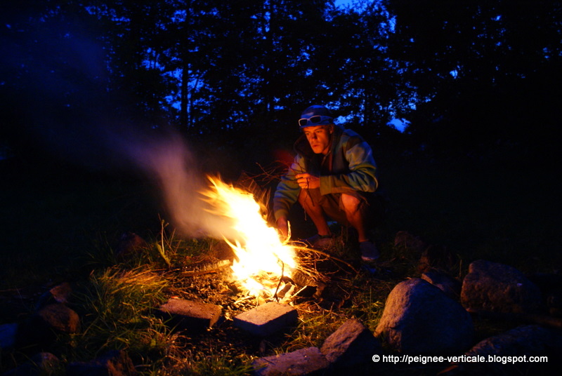 L’endroit est parfait. Nico réussit à faire partir un feu (non sans mal, avec un taux d’humidité proche de 99,9%…) et c’est sous un ciel parfaitement étoilé que l’on rejoint la tente après cette première journée d’émerveillement.