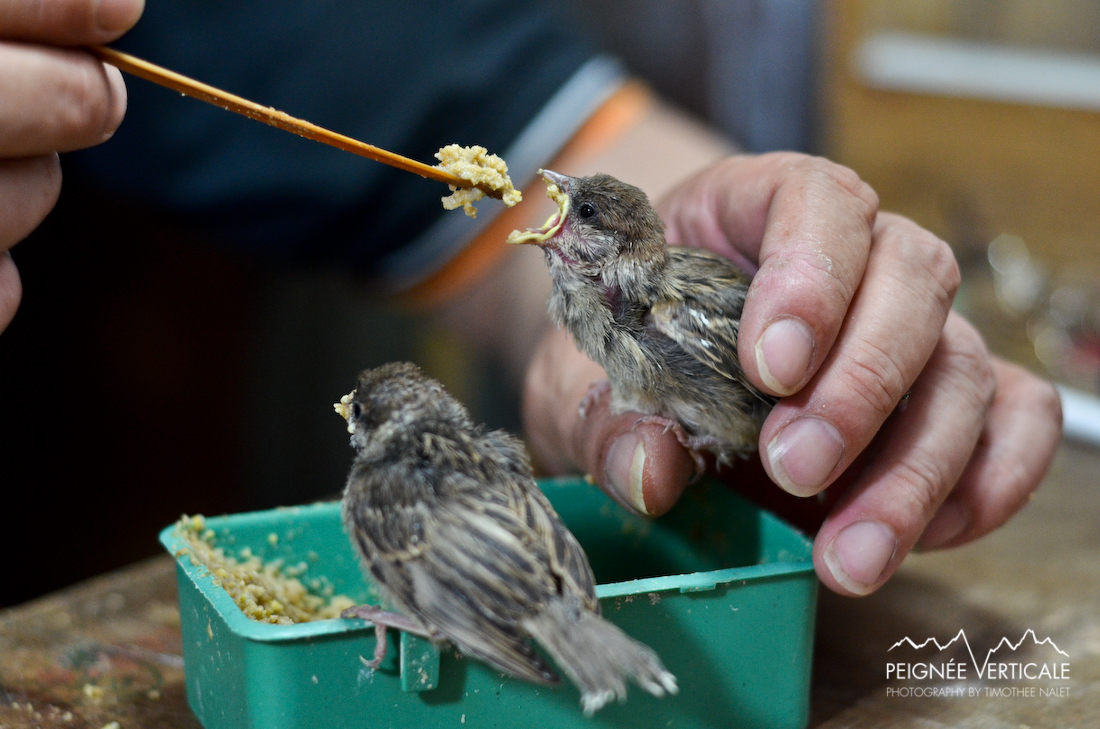 Quelques allées plus loin, je fais une belle rencontre : celle d’un vendeur nourrissant ses oiseaux. Le spectacle est fascinant.