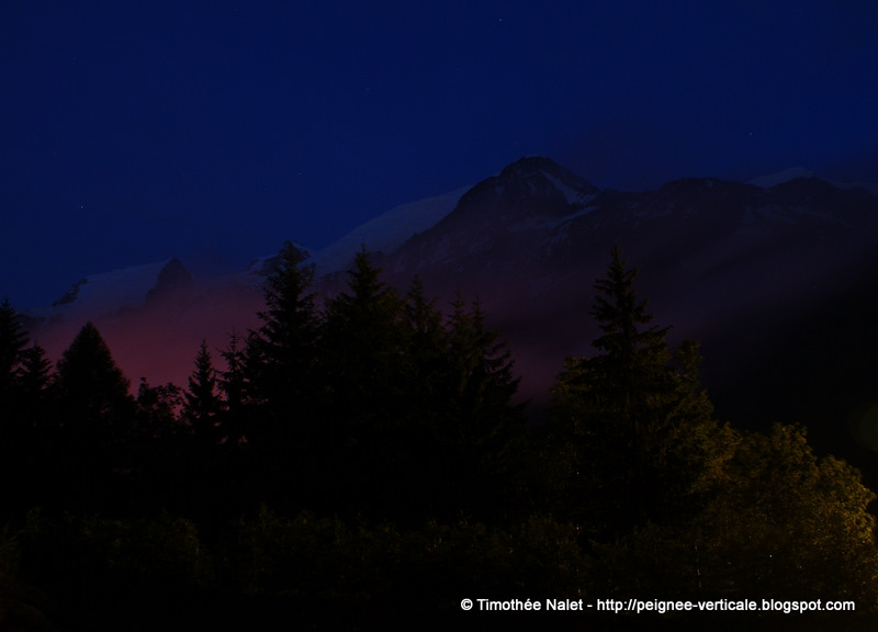 Dernières lueurs sur le Mont Blanc et le glacier des Bossons |