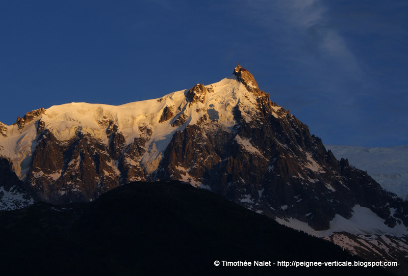 L’aiguille du Midi, dernière à recevoir le soleil |