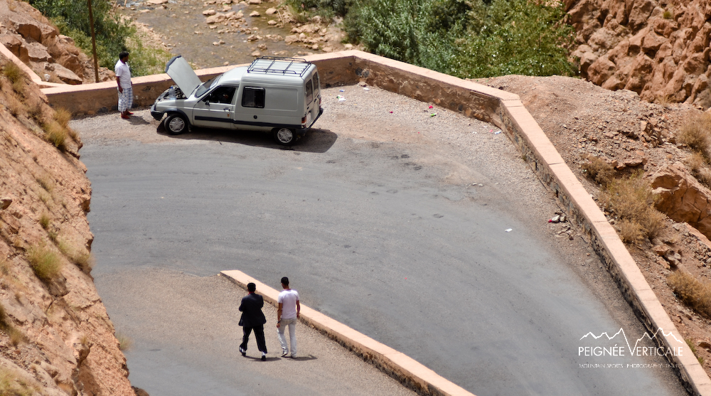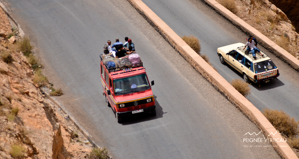 A la campagne, et plus particulièrement dans le Haut-Atlas où nous nous sommes baladés pendant une semaine, c’est une autre histoire… Ânes, motos antiques et Peugeot d’un autre temps se partagent le bitume.