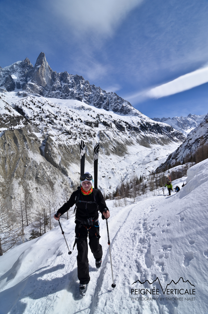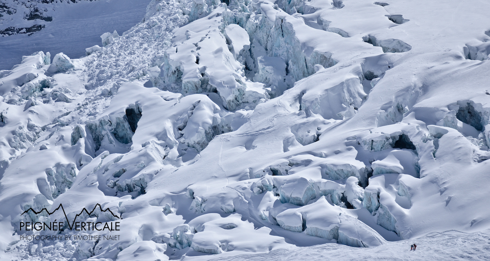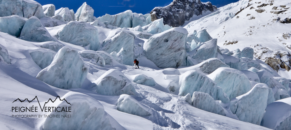 J’ai déjà testé la plupart des itinéraires de cette grande classique du hors-piste Chamoniard mais ce n’est pas le cas d’Antoine, à qui je propose donc de m’accompagner pour ce baptême au milieu des glaciers !