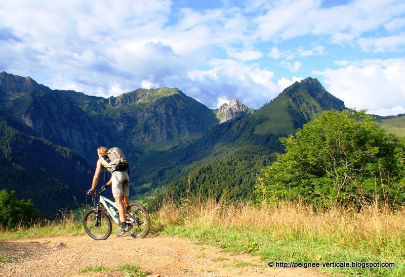Recherche rapide et on trouve le bon chemin pour descendre sur Châtel par un chemin agréable mais très raide par endroits, sans pour autant descendre du VTT.